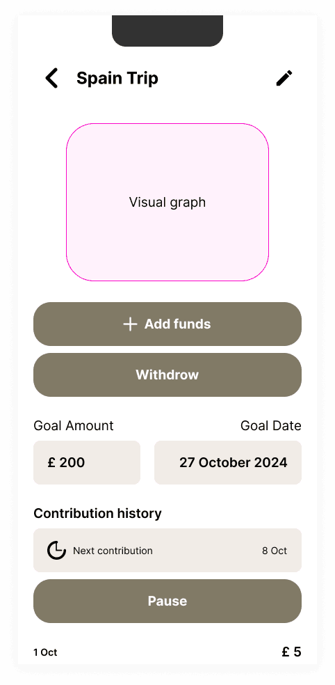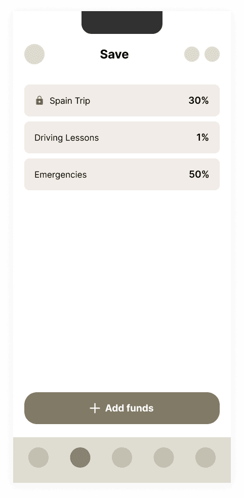 Your challenge is to design a user interface for the "Saving Goals" feature for a generic finance app. Please be as creative as you want! You don’t need to use the Emma Design system.