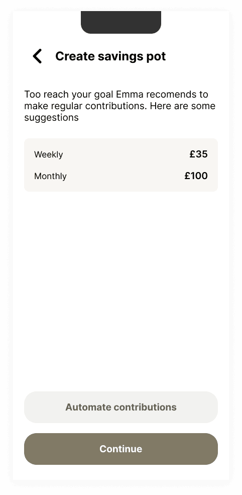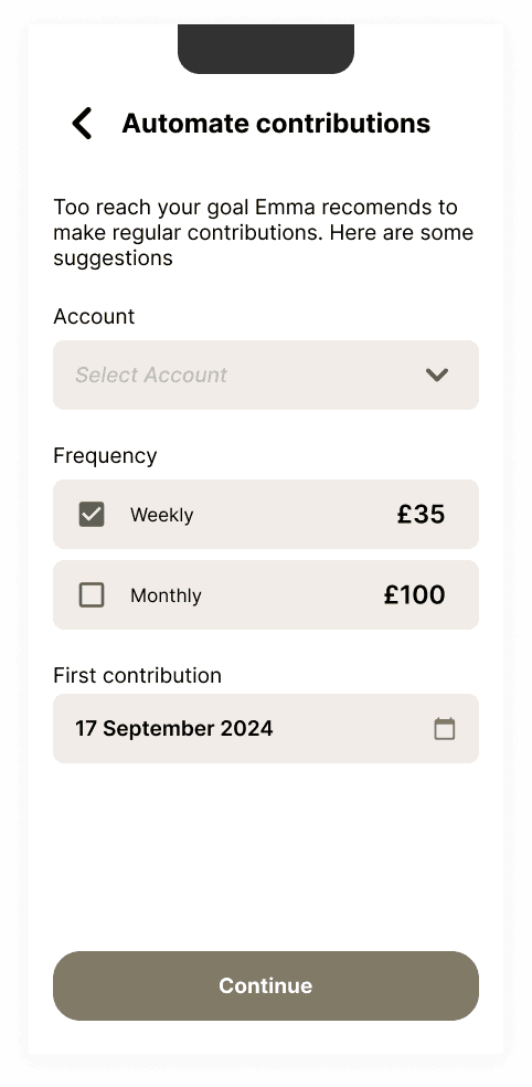 To remedy users who struggle to save up or reach their goals I’ve proposed an automation feature.