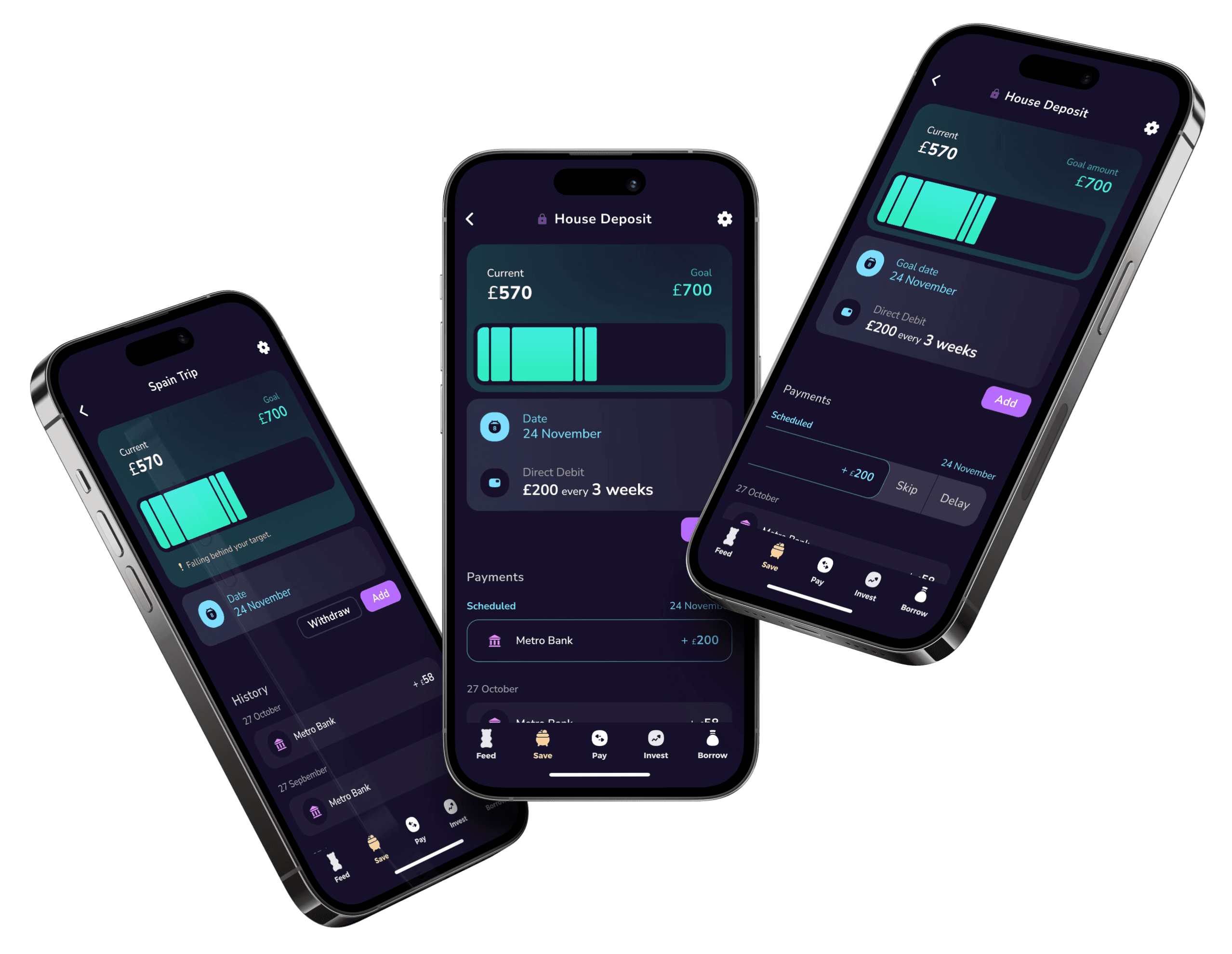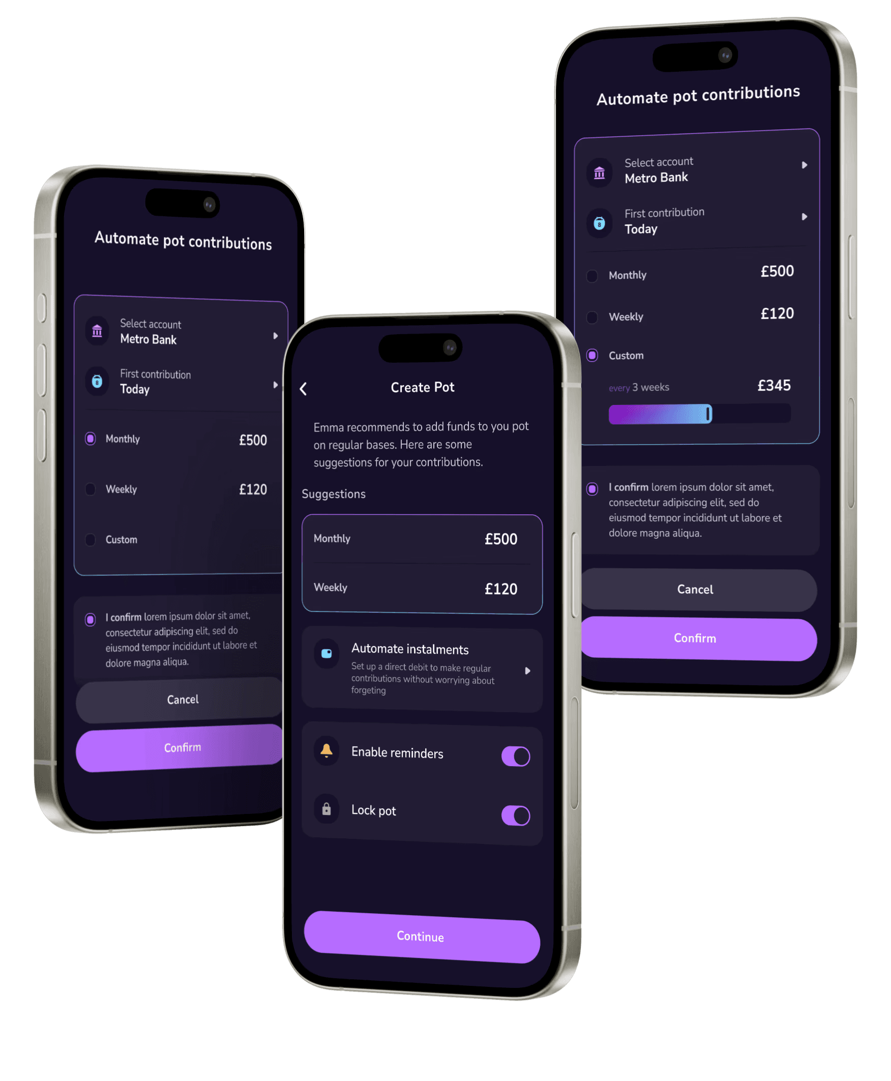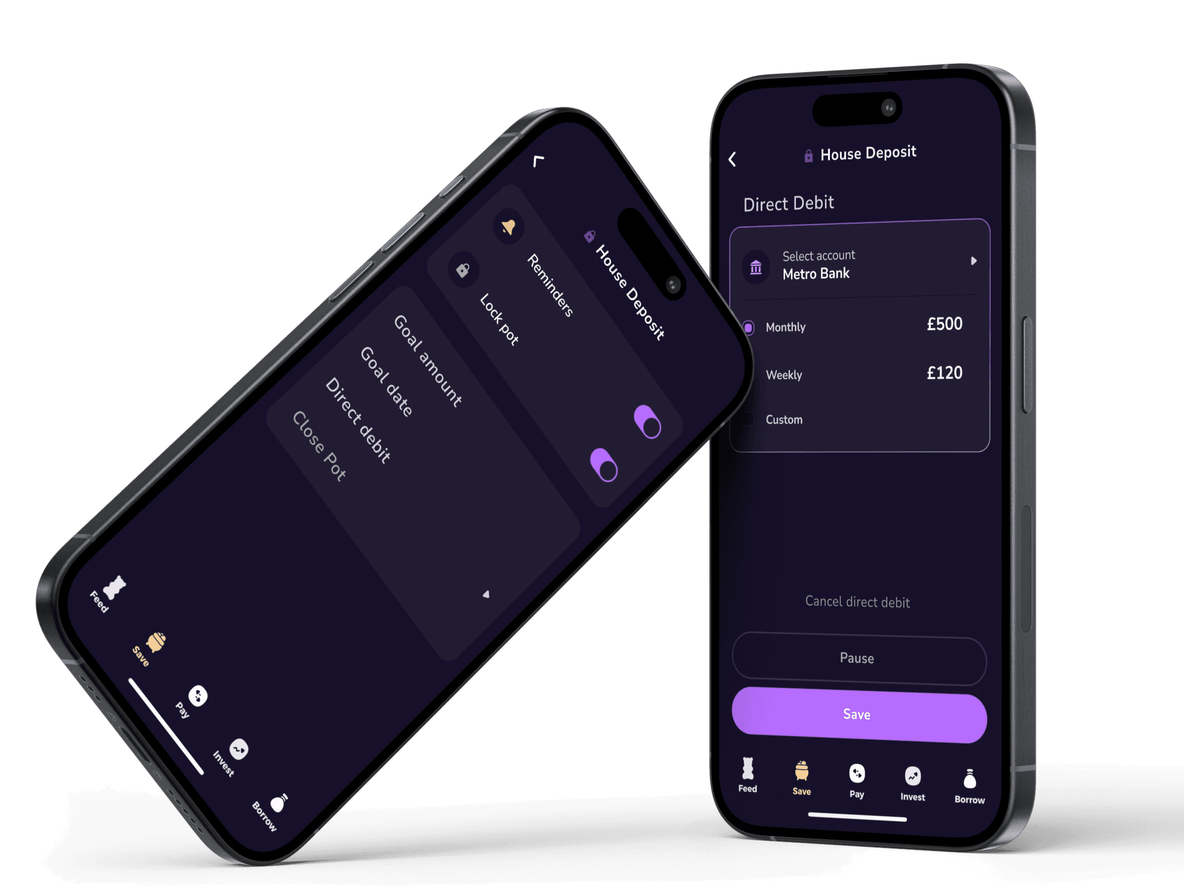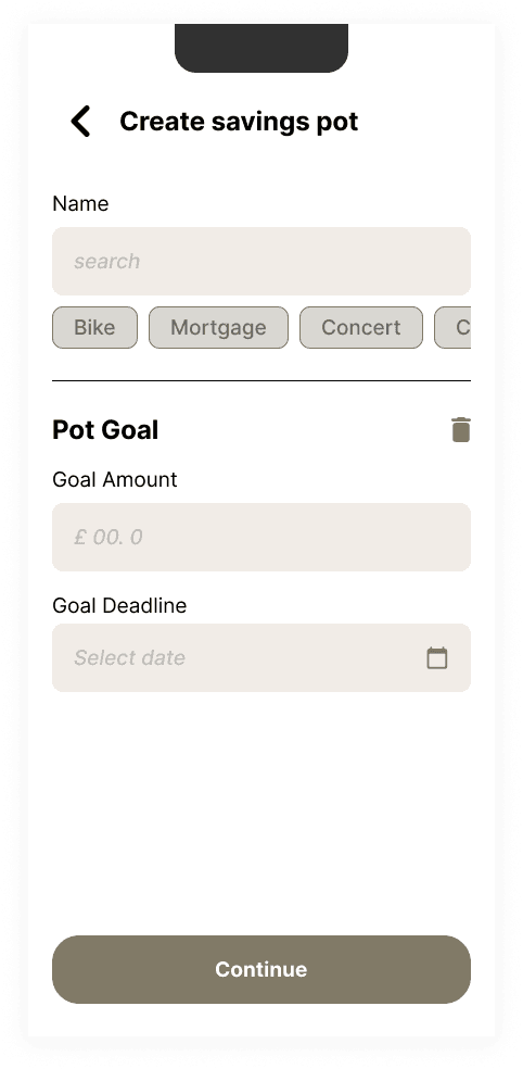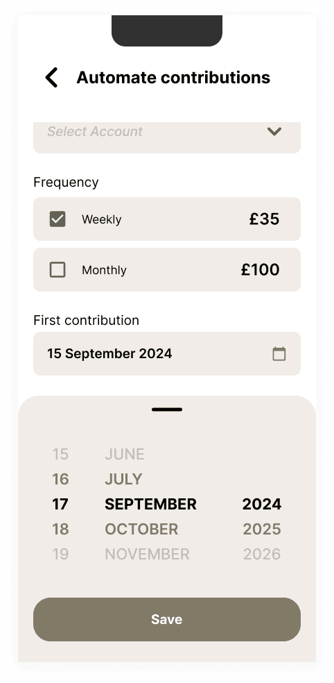 This is a direct debit set up imbedded in pot set up that allows you to customise how much the user wants to contribute and in what frequency without having to think of it.